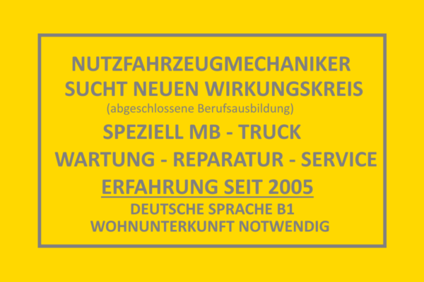 • Nutzfahrzeugmechaniker sucht neuen Wirkungskreis 23.01.2026